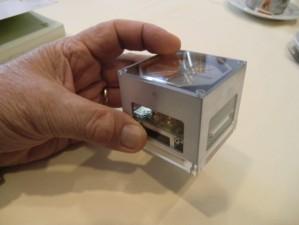 chamado simplesmente de “cubo”, pesa apenas 300 gramas. Essas duas peças, no